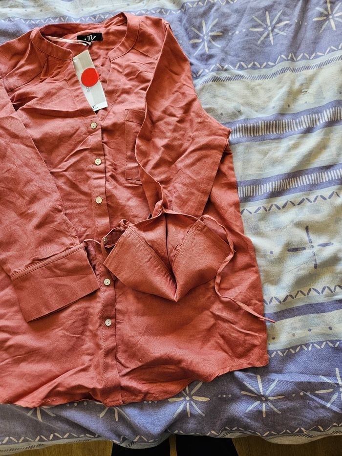 Chemise tex col V, lien de serrage aux poignets, poche gauche à la poitrine
