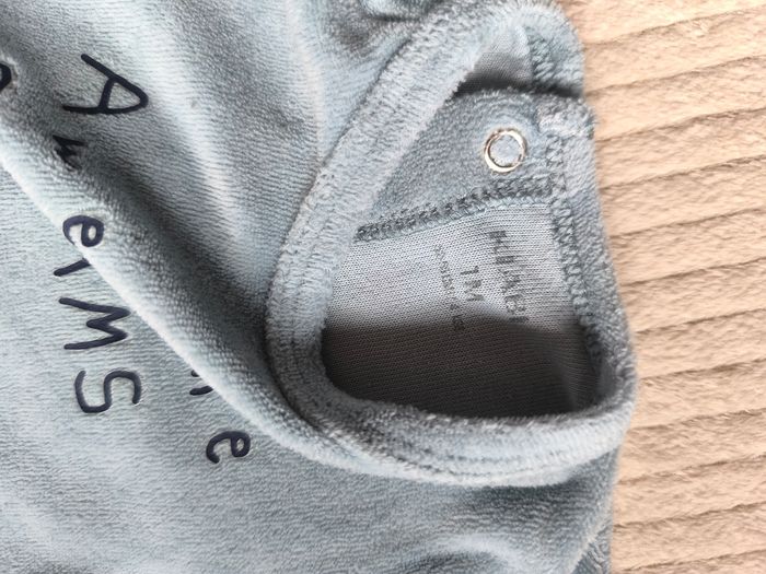 Vend pyjama velours, couleur bleu vert Taille 1 mois Très bon état et très peu porté