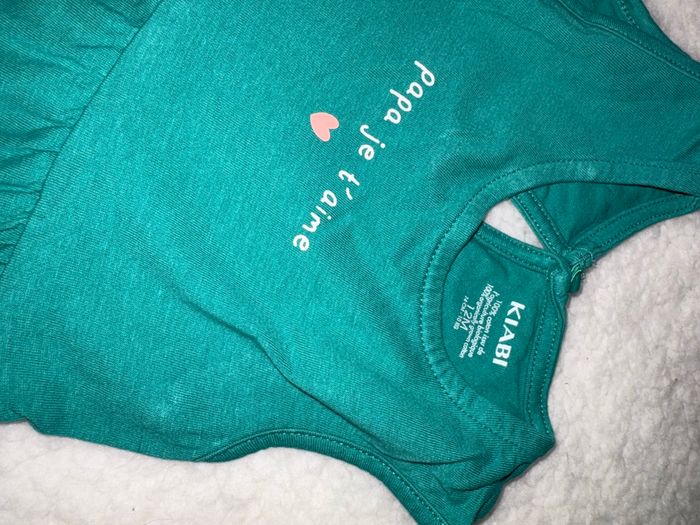 adorable petite robe verte sans manches de la marque Kiabi.✨ Inscription blanche "Papa je t'aime" avec un petit cœur rose sur la poitrine. 🩷 Ouverture avec bouton au dos Taille 12 mois 🐣 Envoie rapide et soigner 🌸 De nouvelles pièces pour bébés arrivent régulièrement, alors n’hésitez pas à revenir souvent et à vous abonner pour ne rien manquer ! ✨🩷