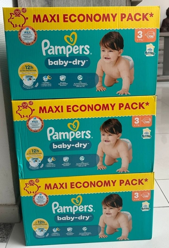 Pampers baby dry taille 3 Prix pour 3 cartons Les cartons seront enlevés pour l envoi pour réduire la taille du colis. Les paquets de couches seront bien protégés/emballés.