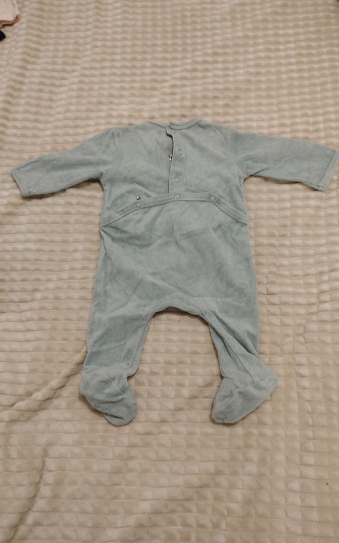Bonjour je vends un pyjama qui se ferme dans le dos de la marque Kiabi Taille 3mois, en velours vert en très bon état