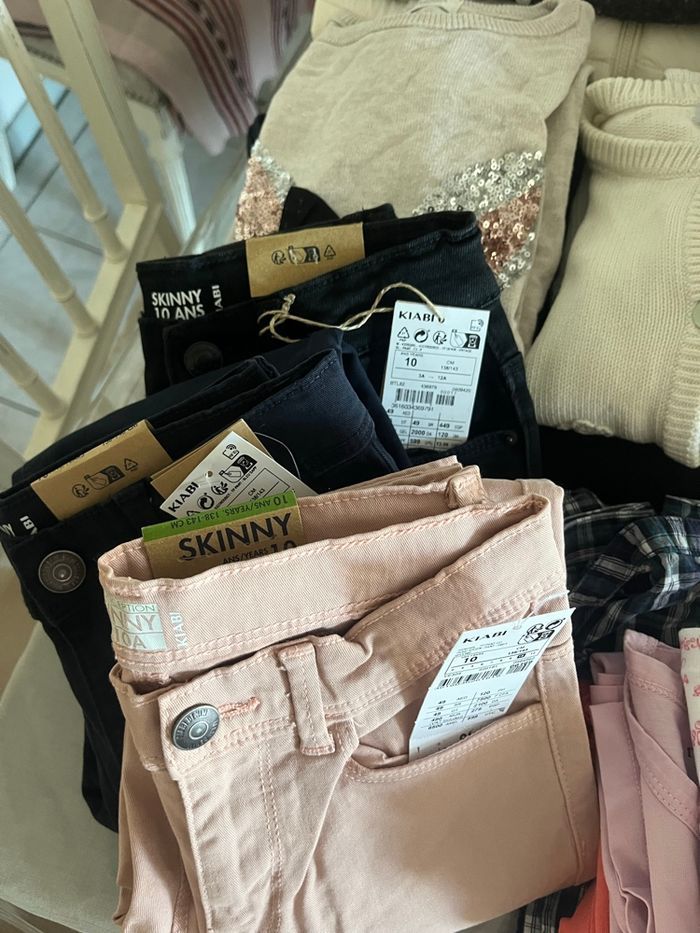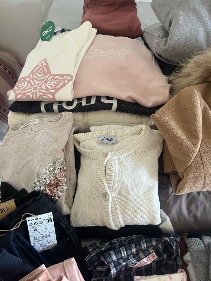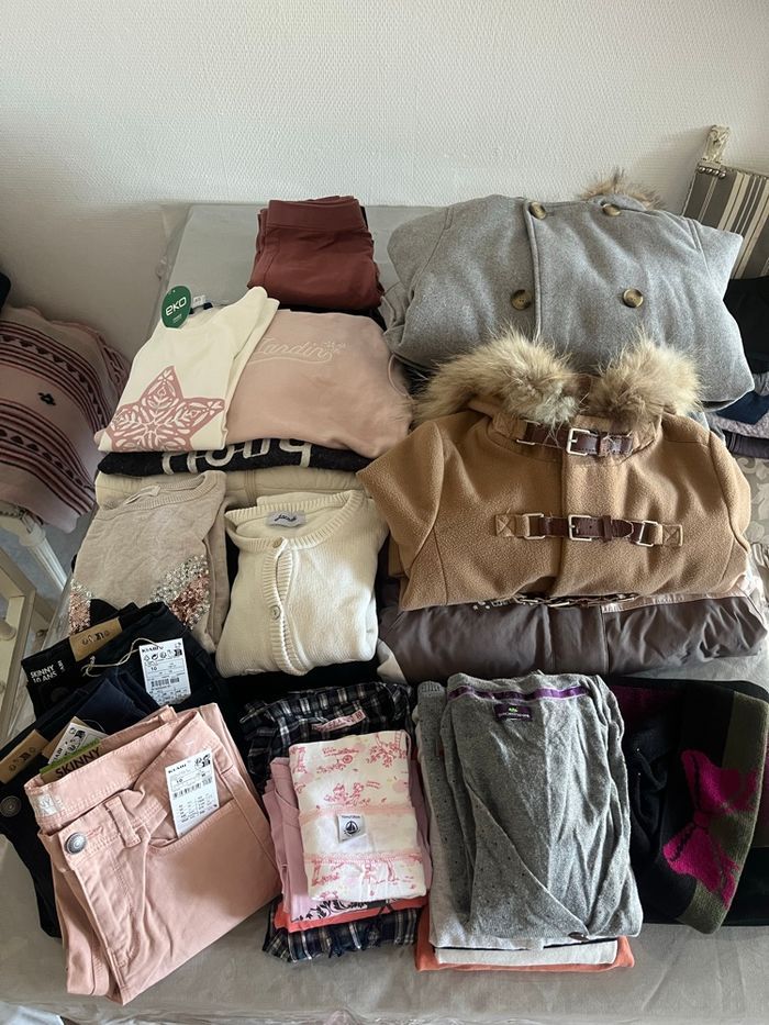 Gros lot de 10 ans toute saisons Déjà en carton, prêt à être envoyé 📦🙃 Manteaux, pulls, Jeans, je donne plusieurs leggins avec le lot petits trous sur le genou Certains vêtements sont neufs encore avec étiquette