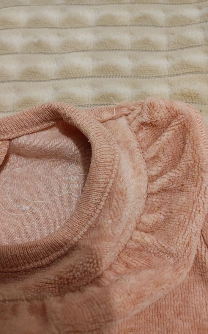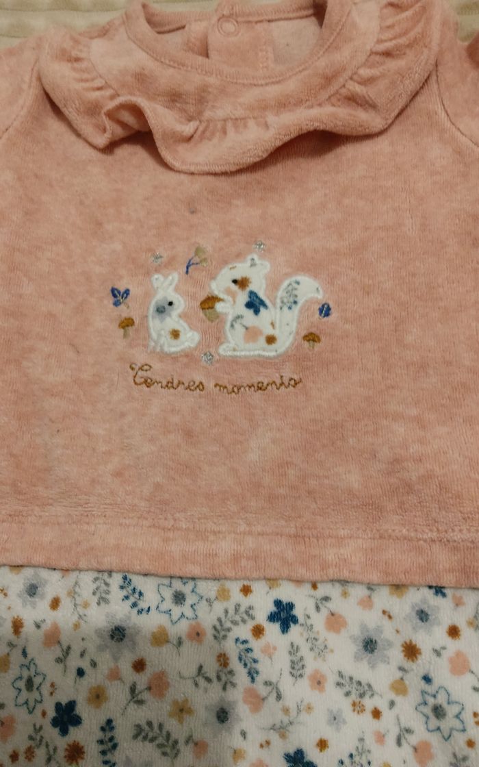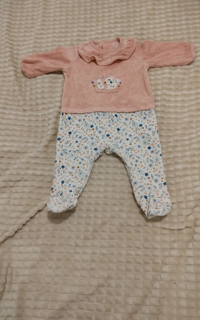 Bonjour je vends un pyjama qui se ferme dans le dos et entre les jambes de la marque sergent major Taille 3mois, en velours rose et blanc en très bon état