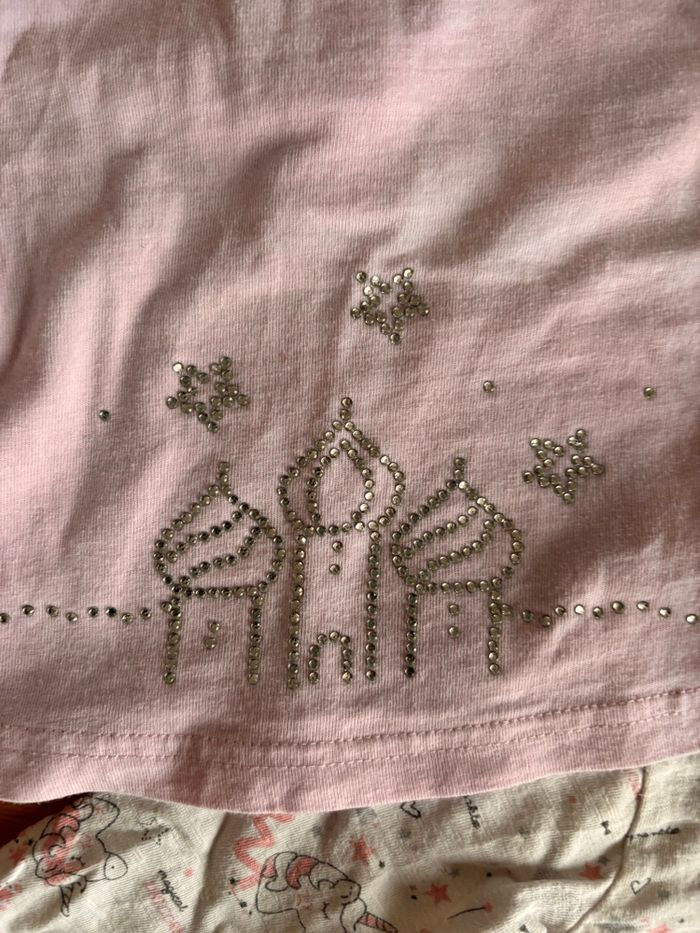 Lot de 2 t shirts filles à longues manches 6 mois , 1 orchestra , l’autre sans marque 1 rose avec château en strass et l’autre blanc avec licornes roses En excellent état