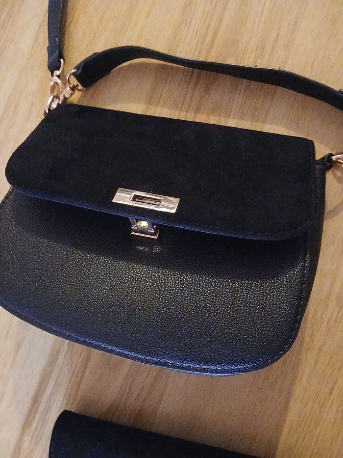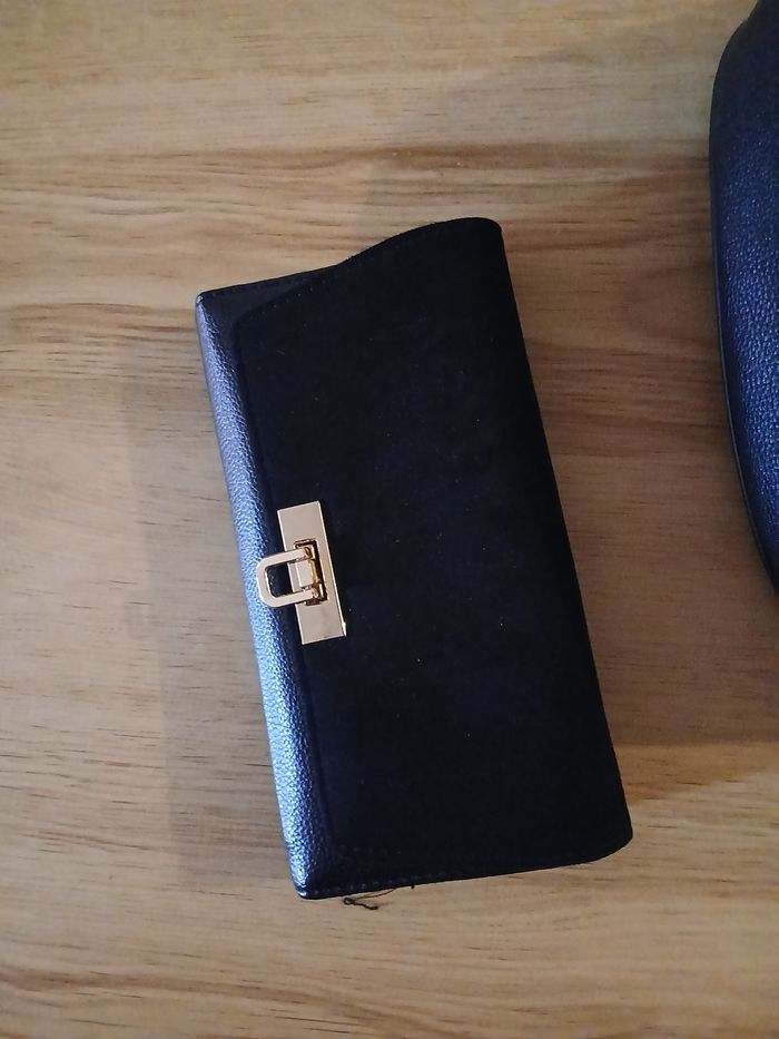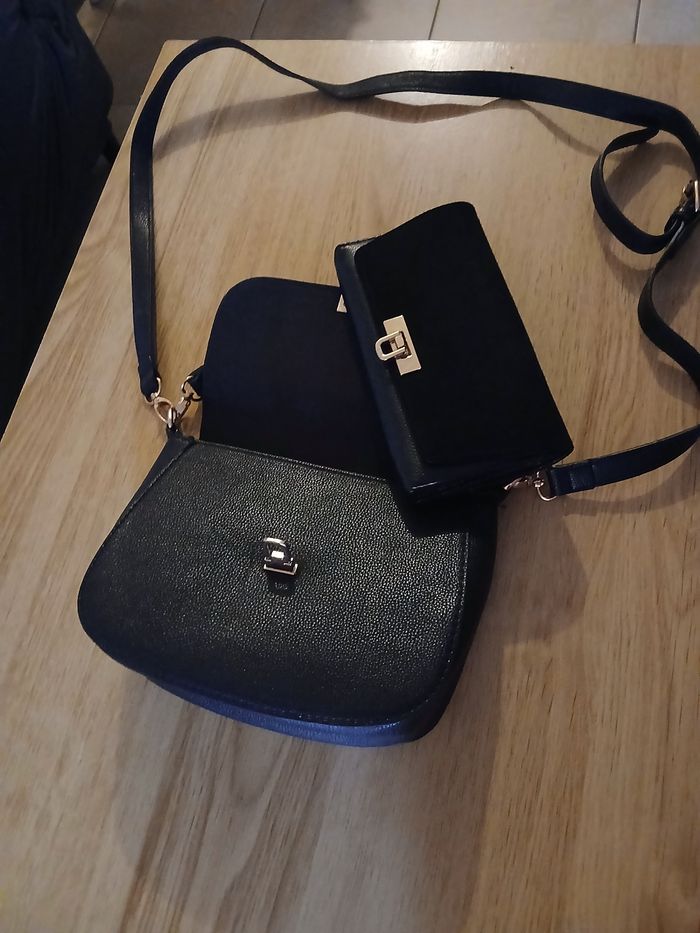 Bonjour Je vend un sac bandoulière noir et un porte feuille assorti effet daim