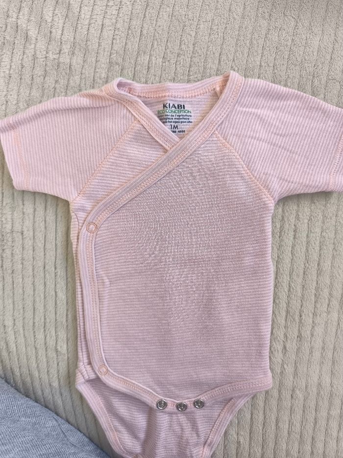 Vend body manche courte rayé, couleur rose Taille 1 mois Très bon état et très peu porté