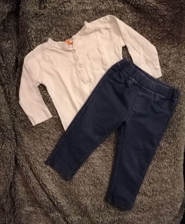 Tenue simple mais jolie en très bon état Taille 12 mois 74 cm Marqué tex baby Tee-shirt en coton et leeging en coton et élasthanne Envoi rapide et soigné