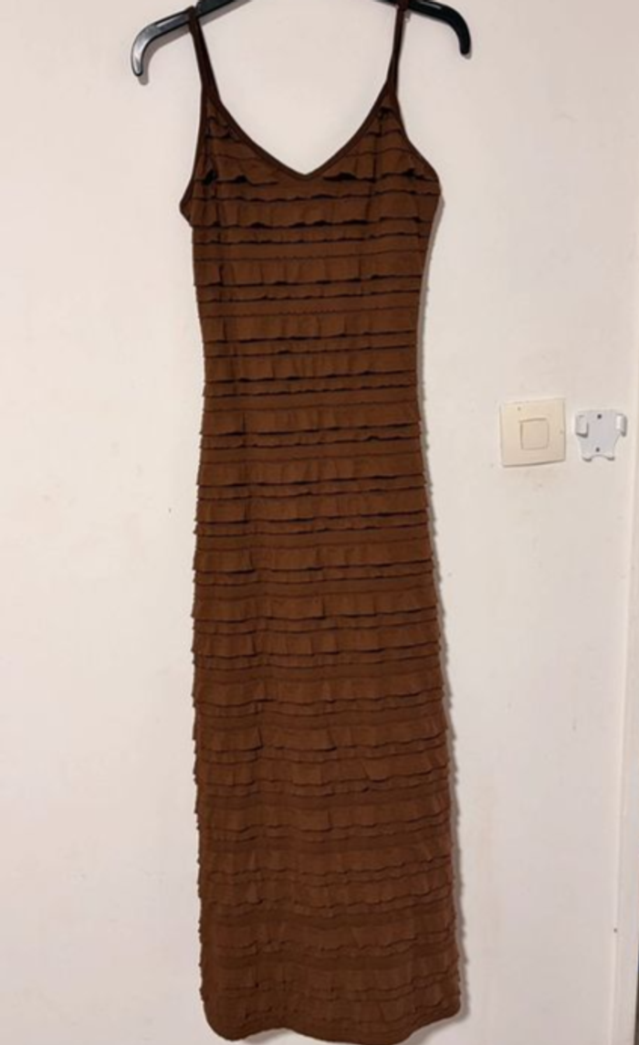 Je vends cette robe longue en viscose de couleur marron. - Type de produit : Robe - Taille : 34 - XS - Couleur : Marron - Matière : Viscose N'hésitez pas à me contacter pour plus d'informations ou de photos.