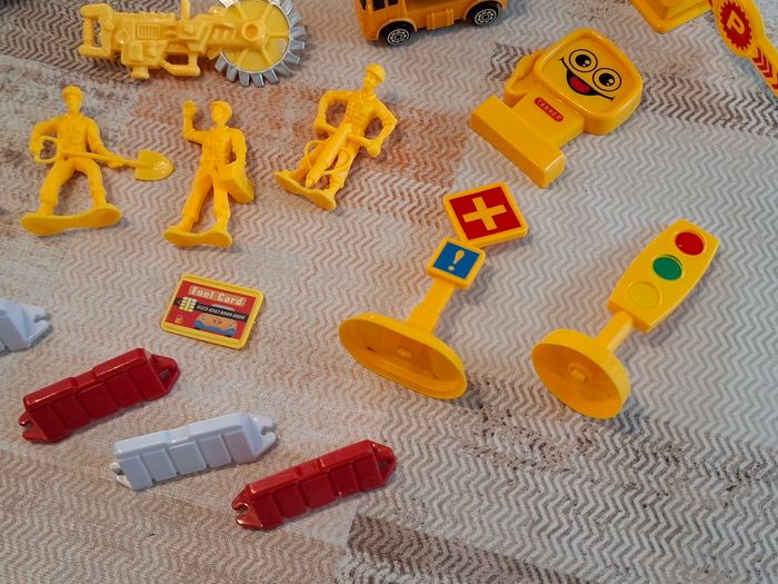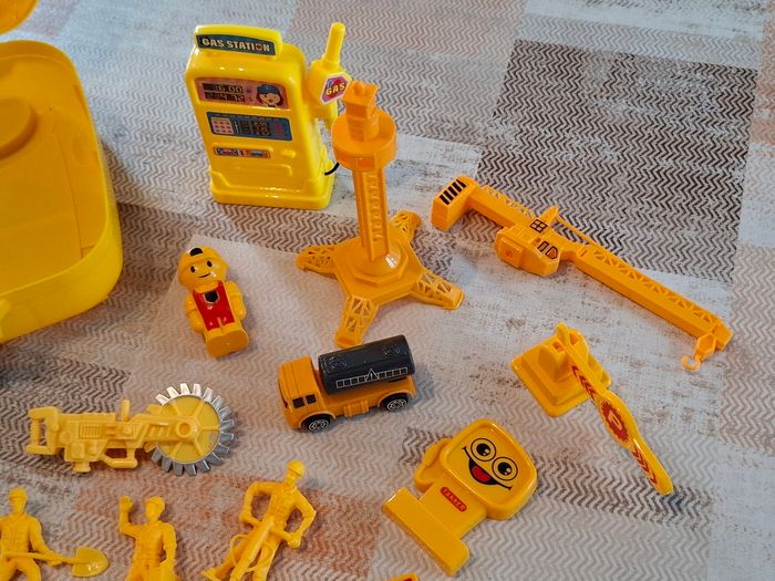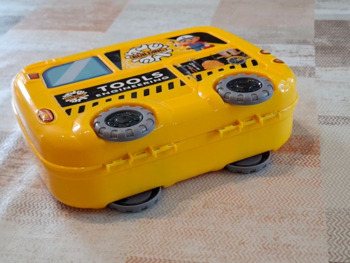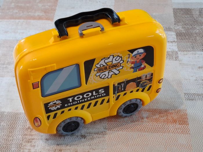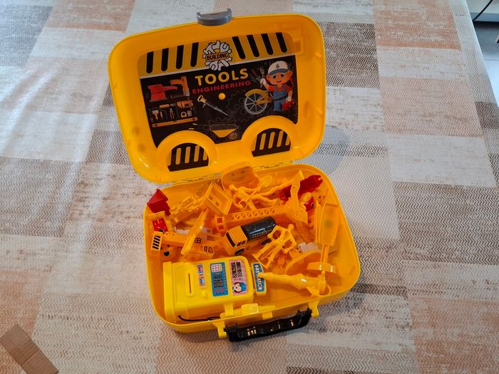 Boîte de jouets / Constructions Jolie boîte contenant des jouets sur le thème des constructions. Pratique à emporter partout !