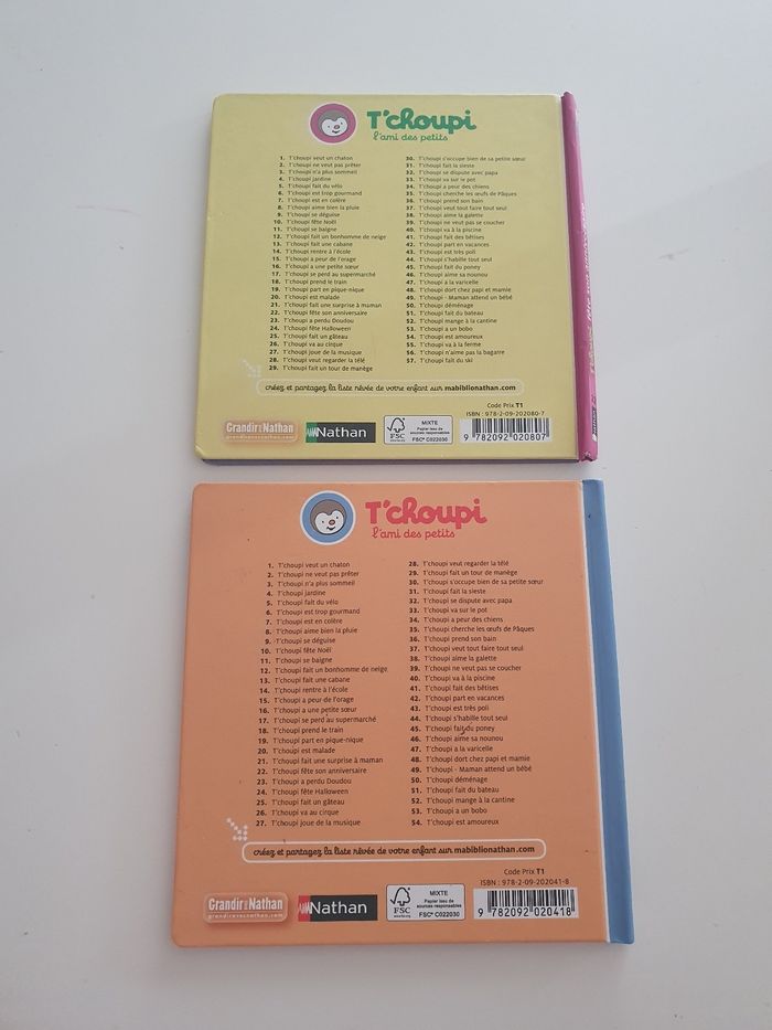 A vendre lot de 2 livres Tchoupi, pages plastifiées : - Tchoupi rentre à l'école, en très bon état. - Tchoupi fête son anniversaire, ⚠ l'intérieur est décollé (à recoller, voir photo) mais les pages sont en bon état. N'hésitez pas à jeter un coup d'œil sur mon dressing (d'autres livres en vente). Une réduction dès 2 articles achetés ! #elodieeden45_livres