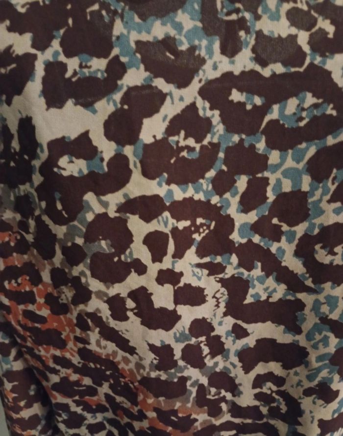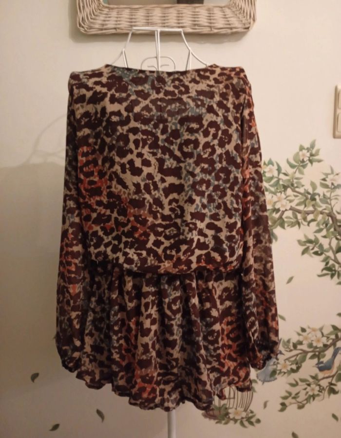 Robe entièrement doublée. Taille 40. Motifs léopard.