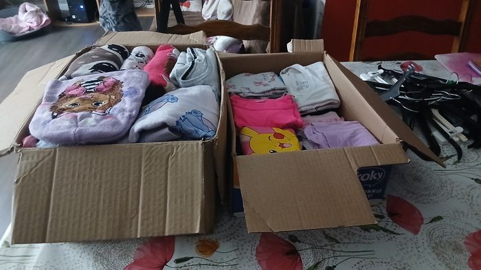 Tout les articles les 2 carton pour 40€ vêtements en bon état, tres bon état pour certains et d'autres traces d'usure le tout 40€