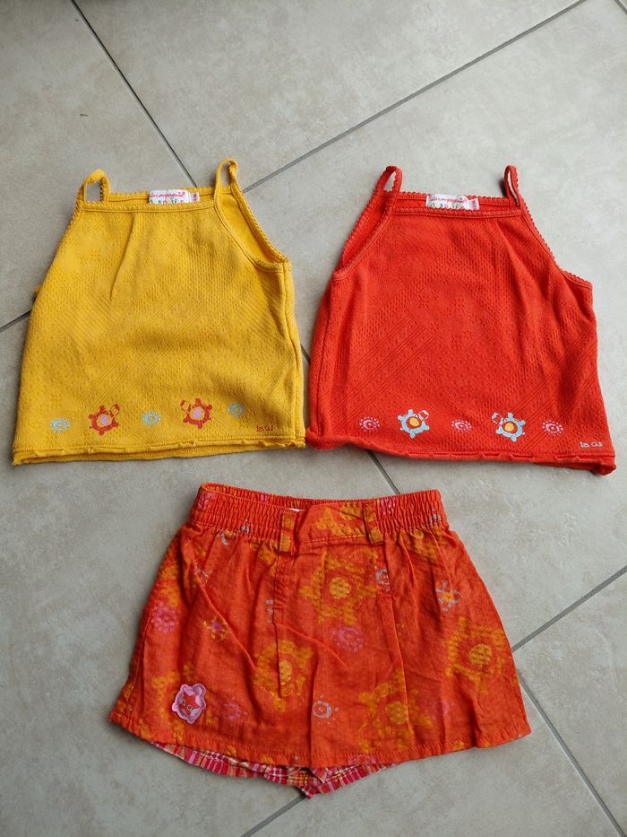 2 Débardeurs en 24mois Jupe-short en 18mois
