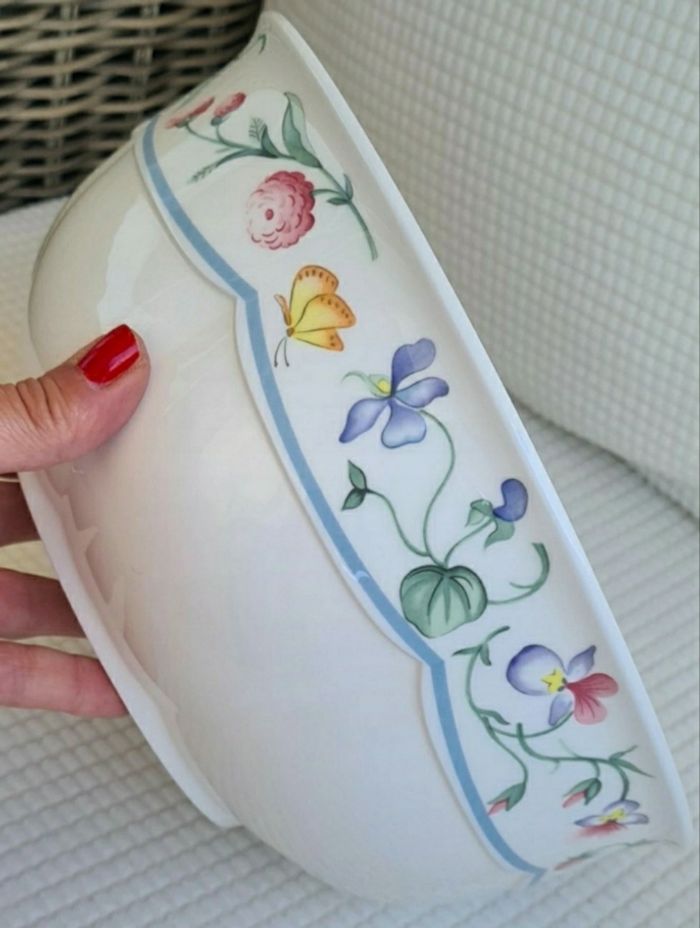 Grand plat/ saladier décor printanier fleurs et papillons Diamètre 25cm Hauteur 11cm Collection Mariposa Villeroy & boch Etat impeccable, aucunes rayures/ micro rayures ni traces