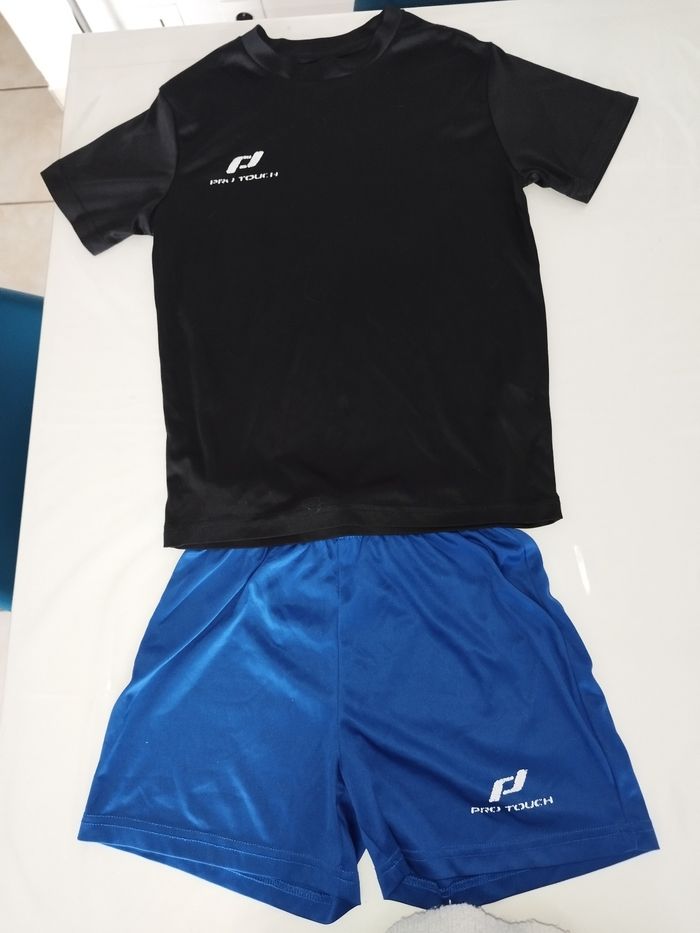 Tenue de foot comprenant un tee-shirt et un short taille 8/10 ans marque Pro touch Un haut manche longue thermique taille 8/9 ans marque Kipsta et une paire de chaussettes taille 31/34 marque Kipsta Tout en très bon état