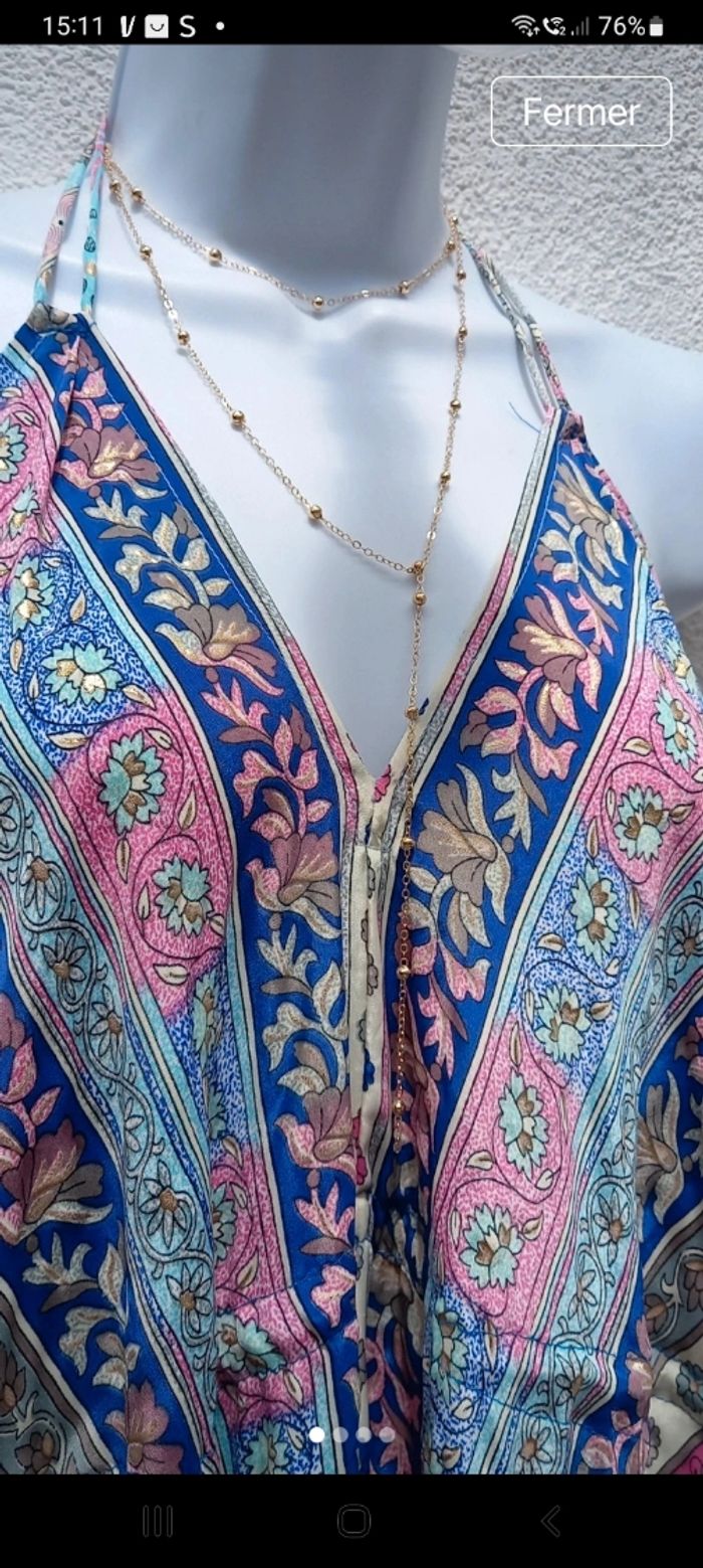 Robe longue en soie multicolore  - photo numéro 3