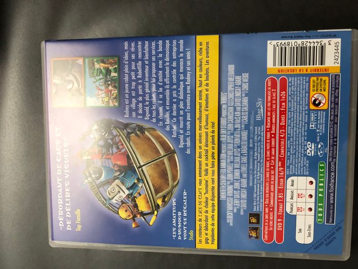 DVD Robots Rodney est un jeune robot plein d'idées, mais son village est trop petit pour ses rêves. Il décide de partir à Robotville rencontrer Bigweld, le plus génial inventeur et bienfaiteur de tous les robots, pour lui proposer ses services. En chemin, il se lie d'amitié avec la bande des Rouillés, et ensemble ils affrontent le démonique Ratchet. Ce dernier a pris le contrôle des entreprises Bigweld et nourrit un plan diabolique qui menace le monde des robots. En route pour l'aventure avec Rodney et ses amis! Français, anglais, arabe Durée 1h26