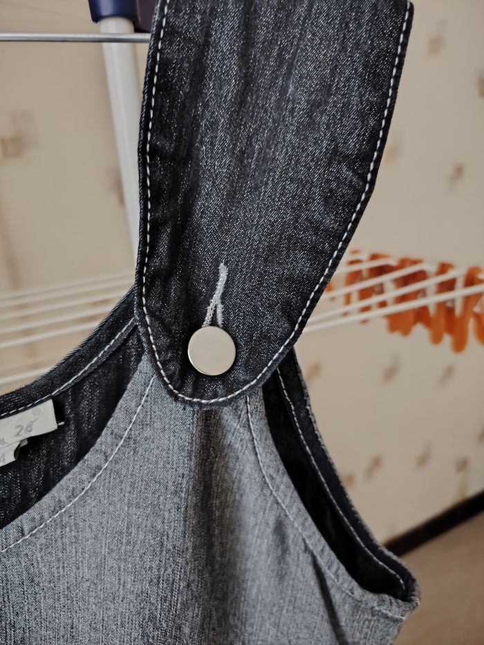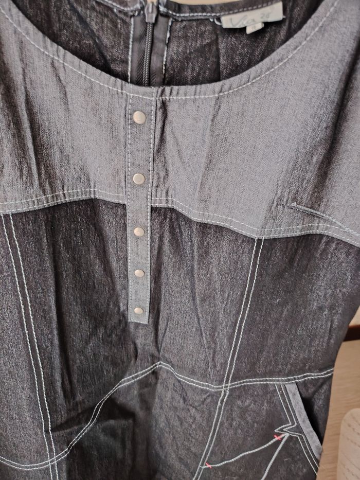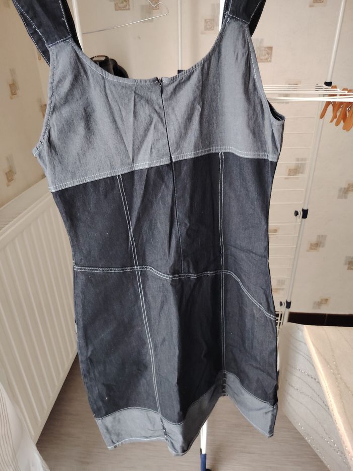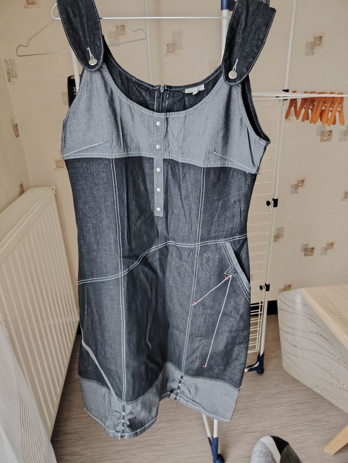 Robe en jean a bretelle avec fermeture derrière la robe de couleur noir et grise En bon état
