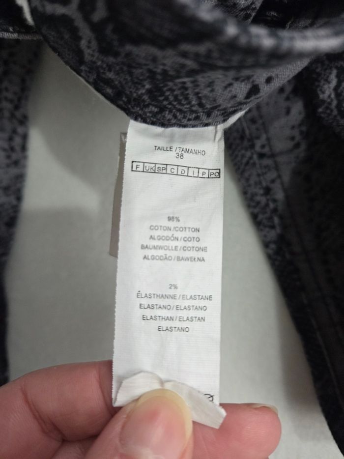 Pantalon imprimé serpent gris/noir, coupe droite, matière extensible (coton + élasthanne). Confortable et tendance, facile à porter au quotidien. ✔ Taille : 38 ✔ État : très bon état #pantalon38 #imprimeserpent