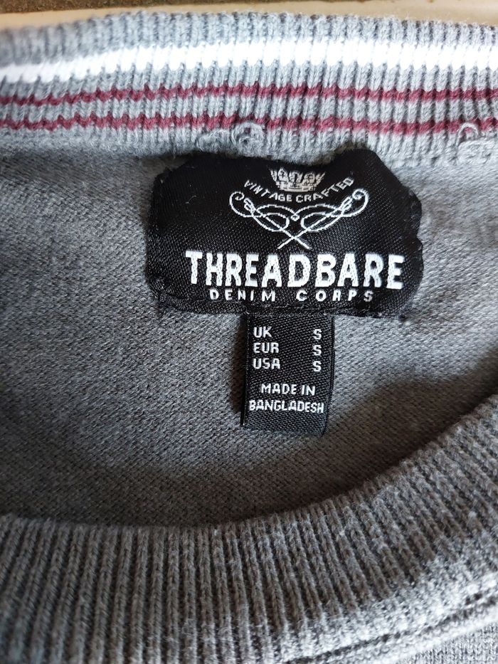 Pull homme THREADBARE Taille S : voir mesures sur mes photos 80% coton - 20% nylon ~ Lavable à 30°c Couleur : gris Très bon état