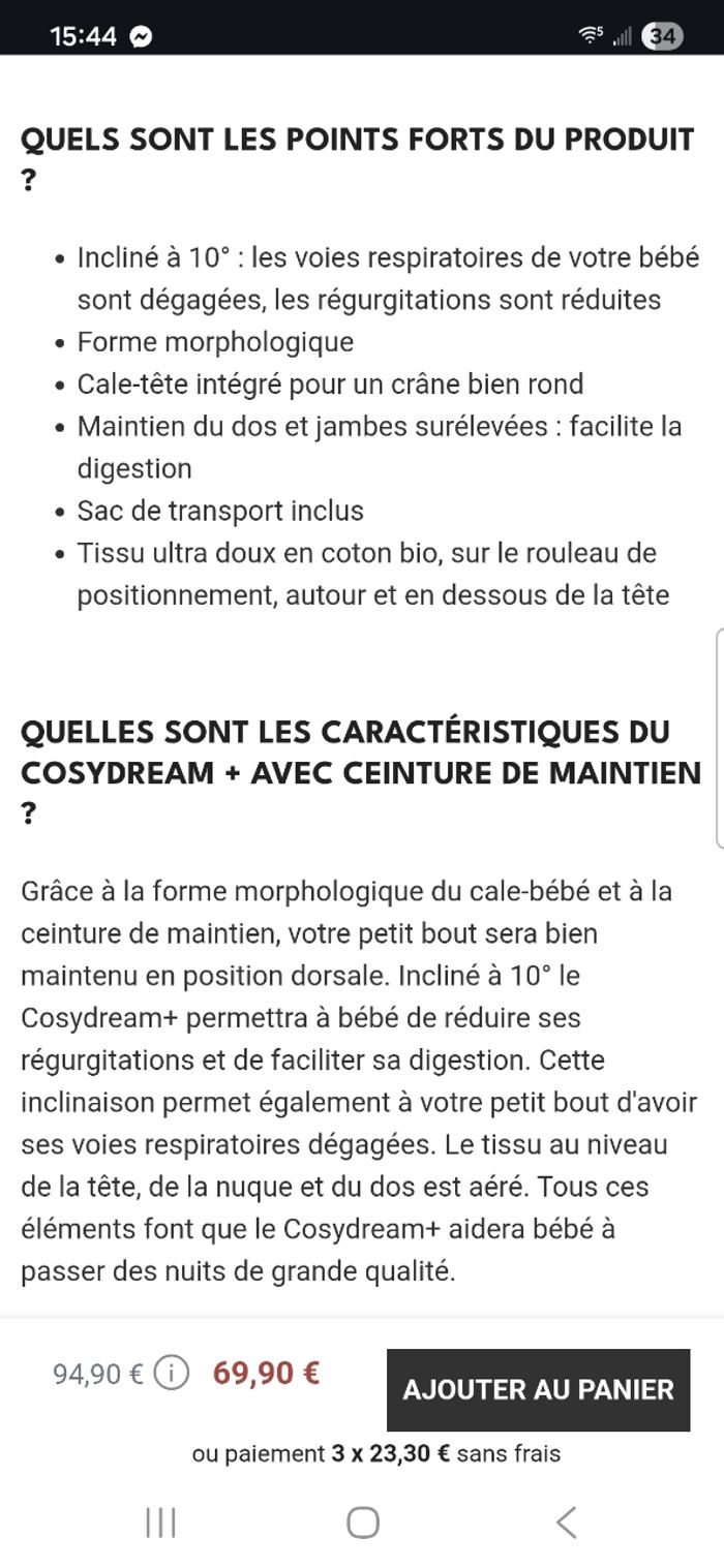 Cosydream + babymoov en très bon état. Jusqu'à environ 3 mois. Idéal pour les bébés ayant des reflux.