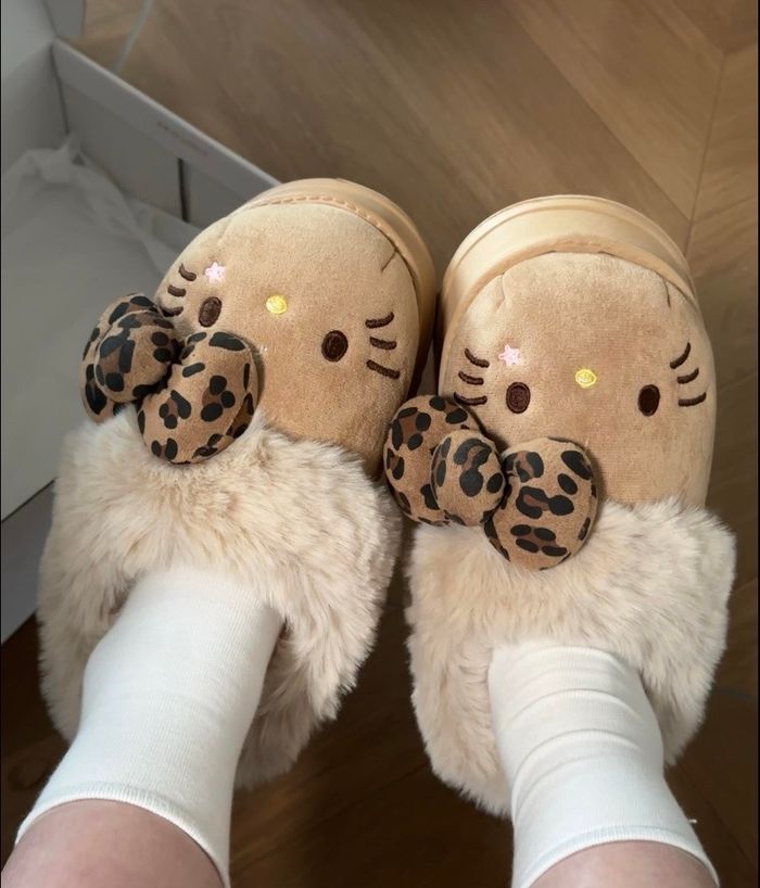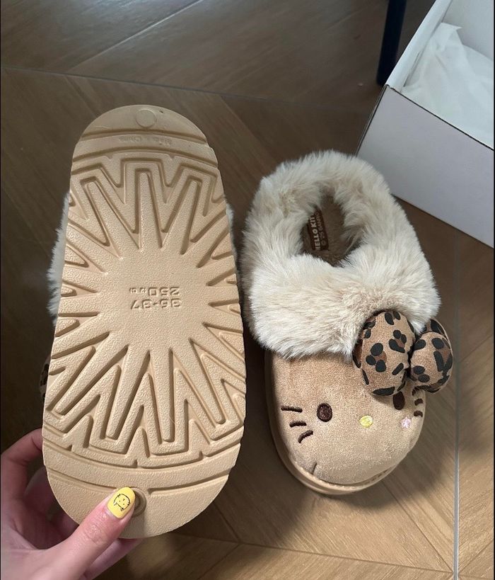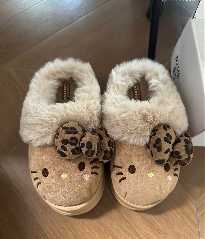 Craquez pour ces adorables chaussons Hello Kitty, parfaits pour garder vos pieds bien au chaud tout l’hiver ❄️ ✨ Ultra confortables et moelleux ✨ Intérieur tout doux qui tient vraiment chaud ✨ Semelle confortable idéale pour la maison 🎨 Couleurs disponibles : • Beige • Marron • Rose 📏 Plusieurs tailles disponibles (me contacter pour connaître les tailles exactes). Parfaits pour cocooner à la maison ou pour offrir 🎁 📦 Envoi rapide et soigné. N’hésitez pas à me contacter pour plus d’informations !