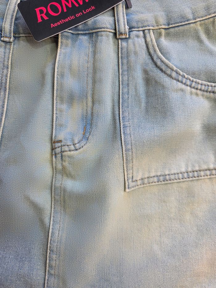 Mini jupe en jean clair style vintage 💙 ✔ Marque : ROMWE ✔ Taille : M (EUR 38) ✔ Double bouton à la taille ✔ Grandes poches avant ✔ Passants pour ceinture ✔ Coupe droite légèrement trapèze ✔ Effet délavé tendance Matière : 73 % coton, 18 % polyester, 9 % viscose Idéale avec crop top, t-shirt ou pull oversize 👌 ✨ État : neuve avec étiquette