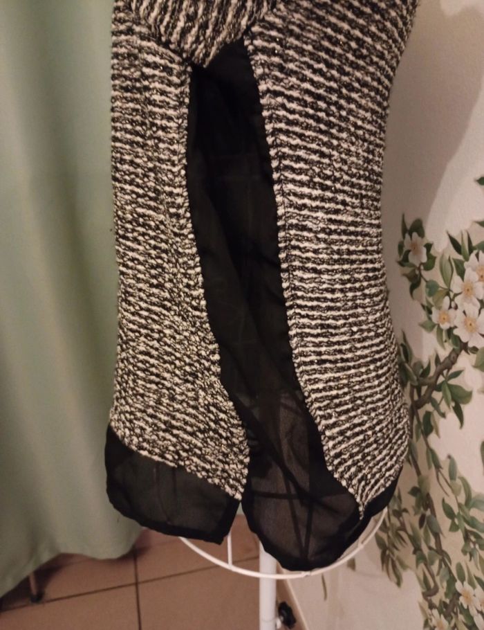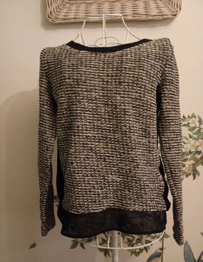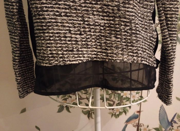 Pull noir et blanc . Voile sur le dessous et sur les côtés. Taille S.