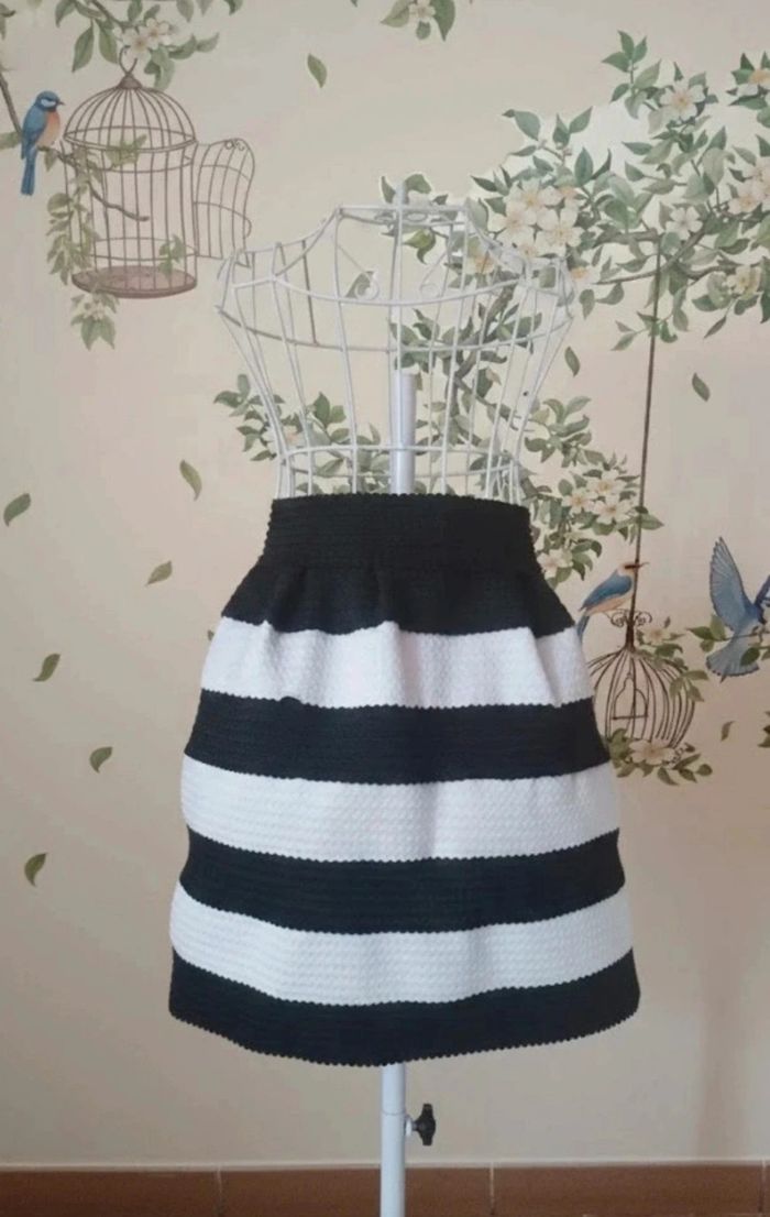 Jupe patineuse épaisse. Noir et blanc. Taille s. Élastique et fermeture éclair