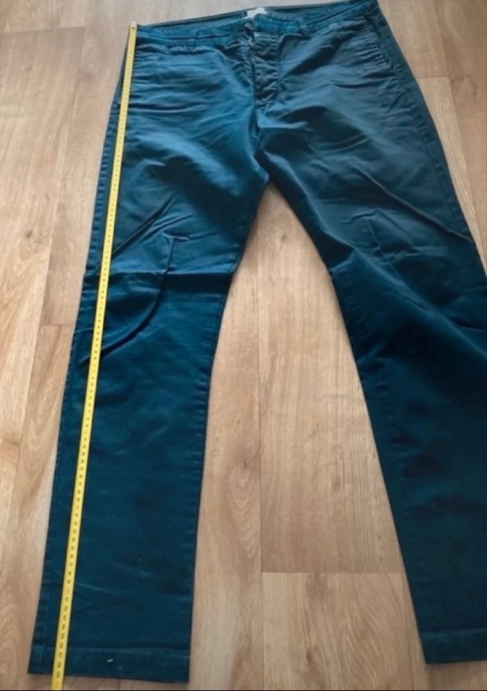 Pantalon bleu foncé de la marque Filippa K. Taille 52 (correspond à un L). Voir les mesures sur photo. Très bon état. D’autres pantalons parmi mes annonces. Possible remise en main propre sur Bagneux ou Paris.