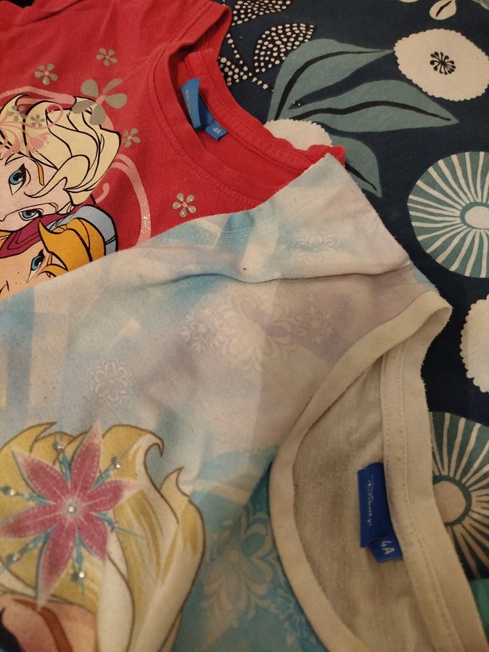Lot de 14 Tee shirt Disney manches longues et courtes 13 sont en 4 ans et 1 et en 3 ans reine des neiges qui se décolle