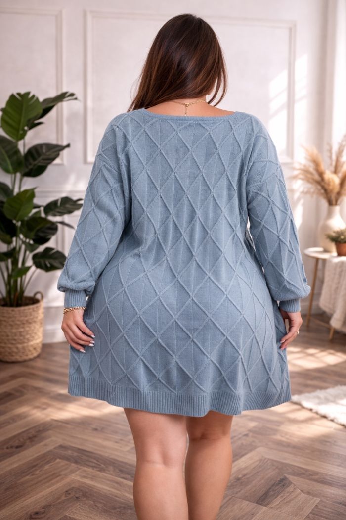 Robe pull en tricot maille losanges texturées bleue grise Femme taille 54 marque Asos 💍  - photo numéro 6