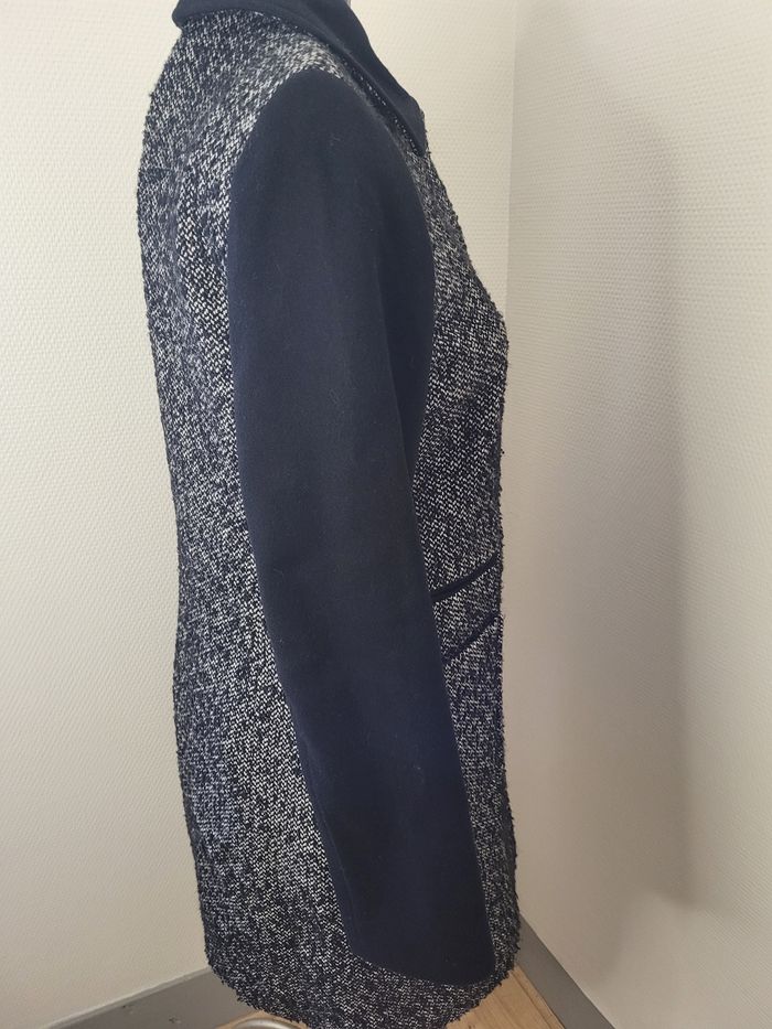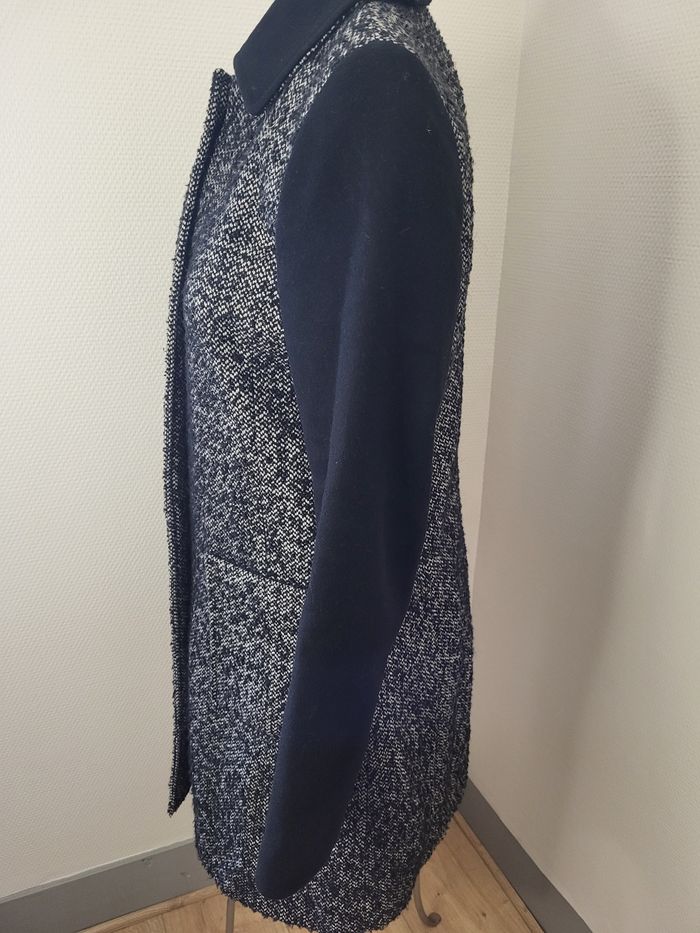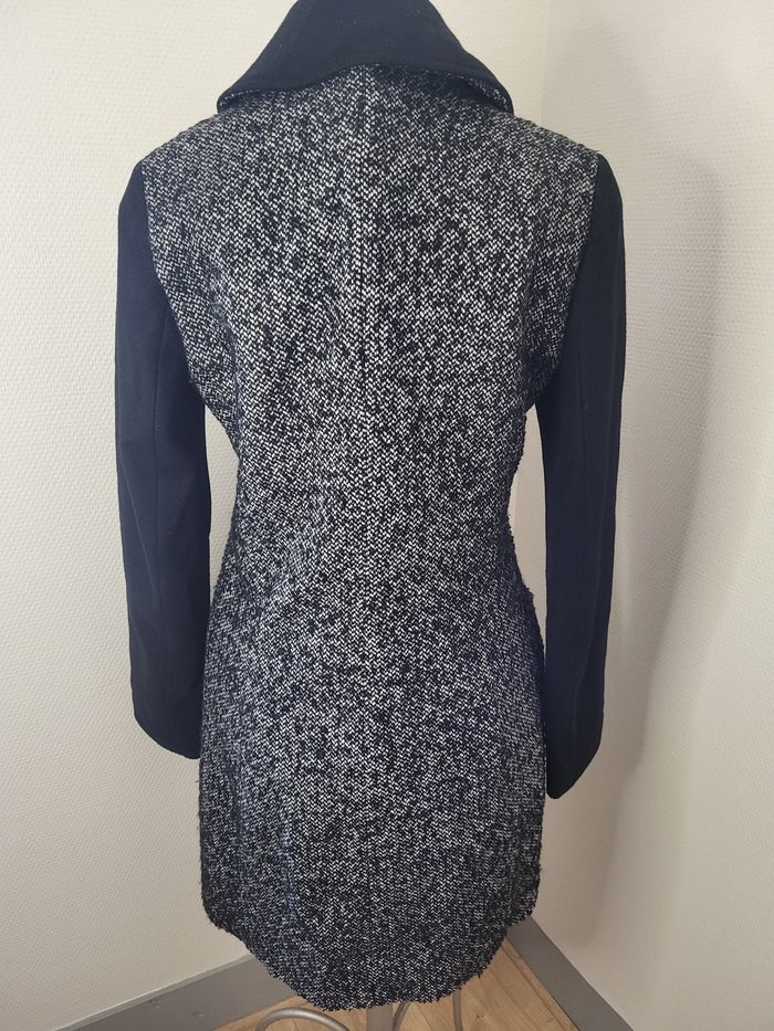 Description : Un incontournable de la garde-robe, ce manteau court noir à la coupe structurée apporte une allure élégante en toute circonstance. ​Détails du modèle : ​Col tailleur classique et élégant. ​Double boutonnage avec boutons noirs brillants. ​Deux poches latérales plaquées. ​Pattes boutonnées décoratives aux poignets. ​Marque : Etam. ​Taille : 36 (S). ​État : Très bon état général.