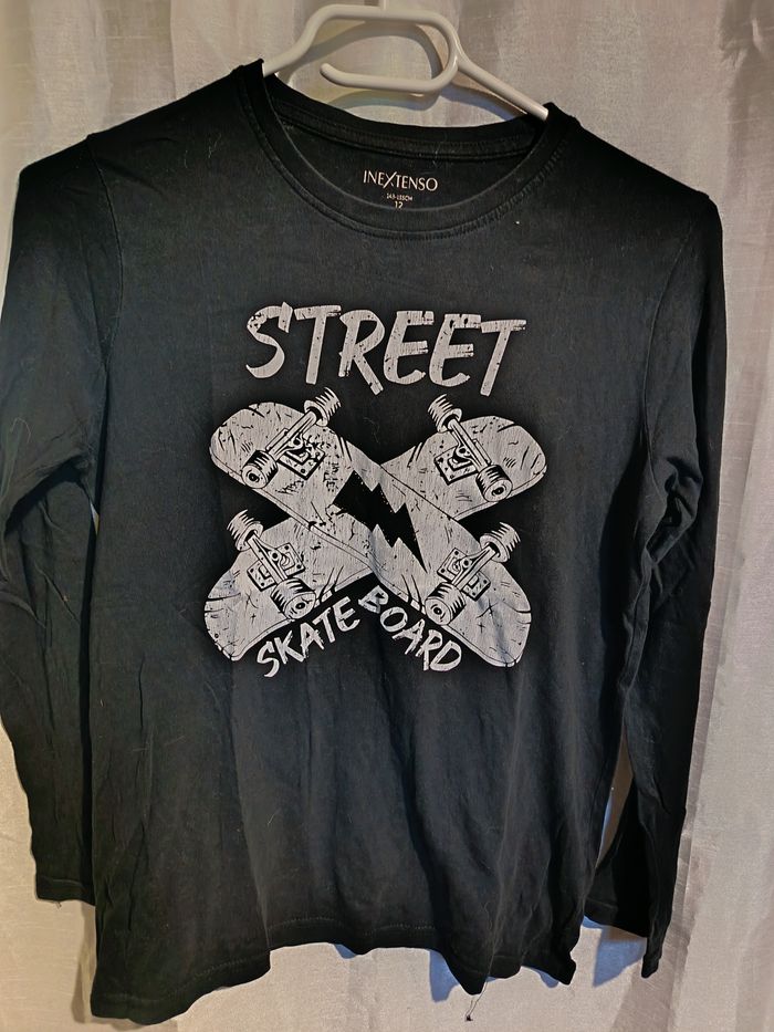 10 articles à 2€= 15€ tee shirt imprimé motif skate largeur épaule 36 largeur poitrine 45 longueur manche54 longueur total 58
