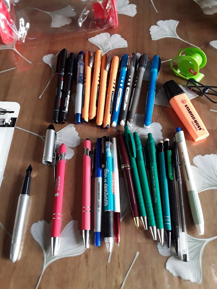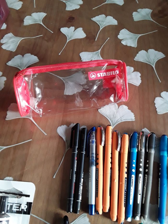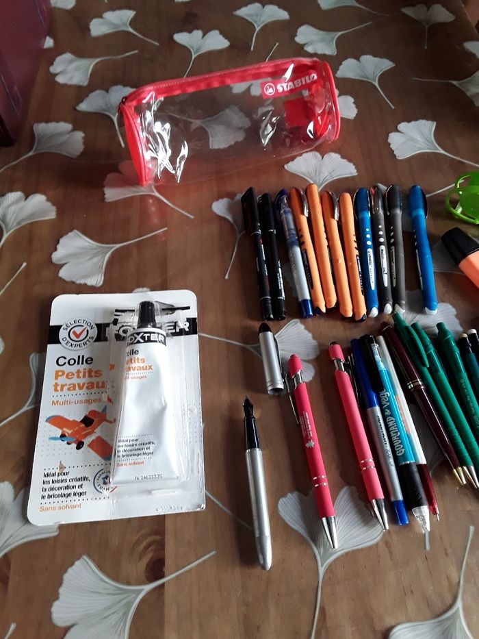 Lot de stylos feutres stabilo avec trousse stylo plume colle taille crayon Environ 25 pieces Le tout neuf pour 6e