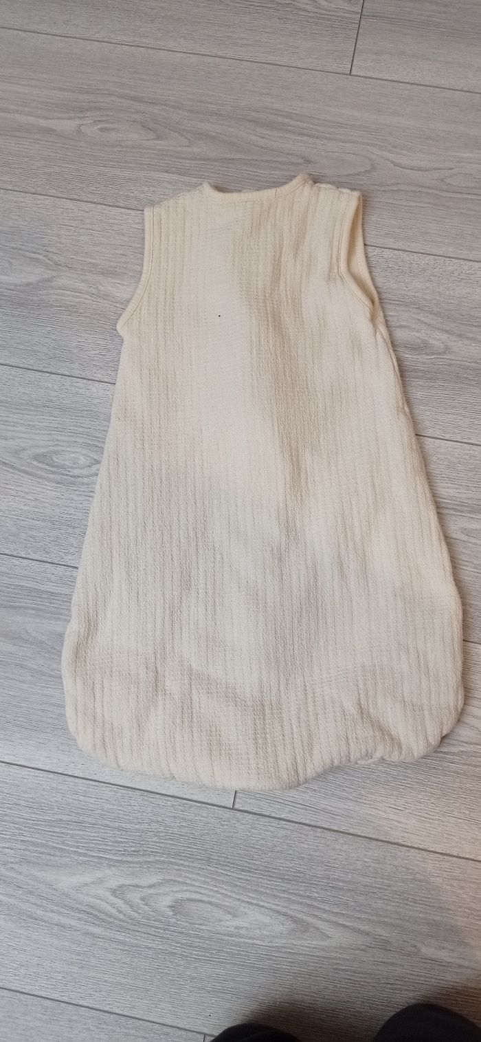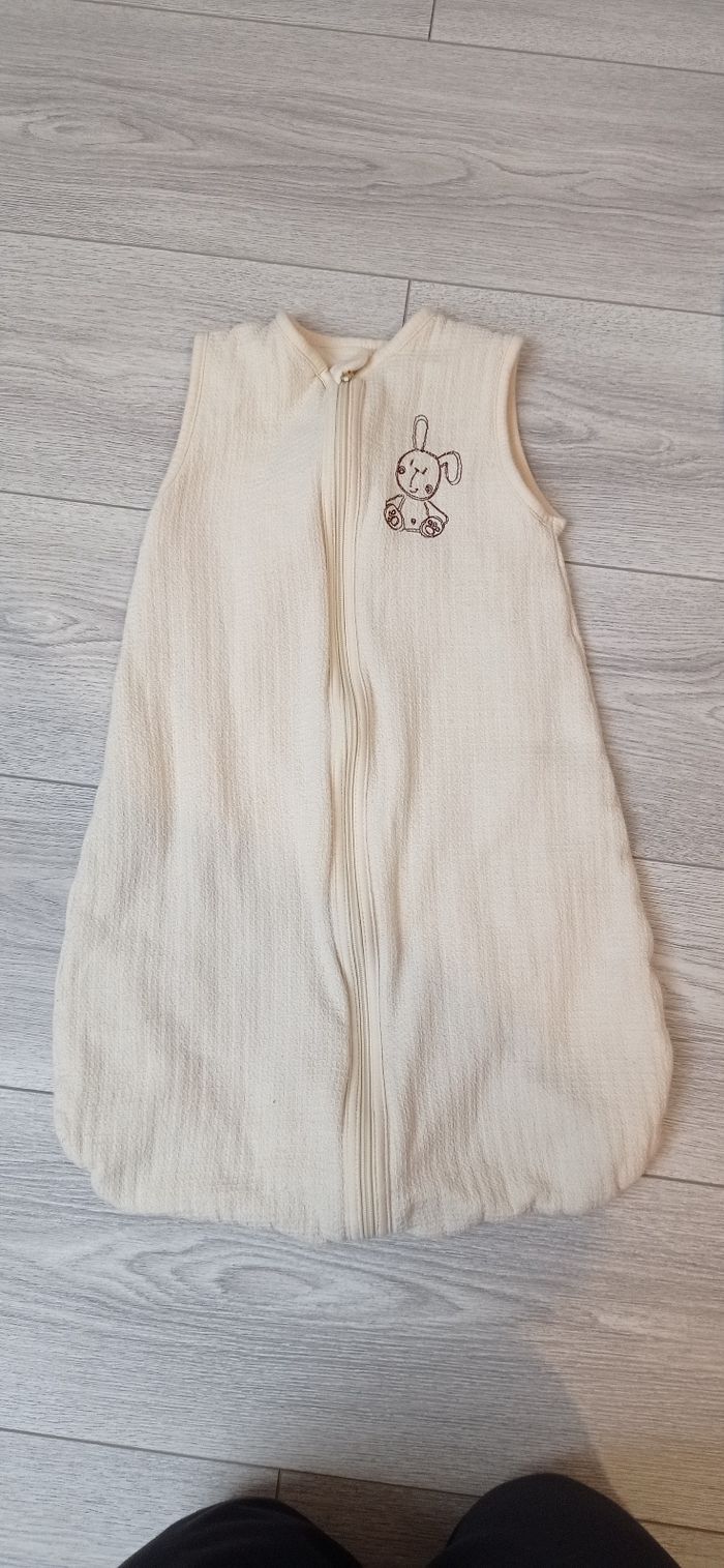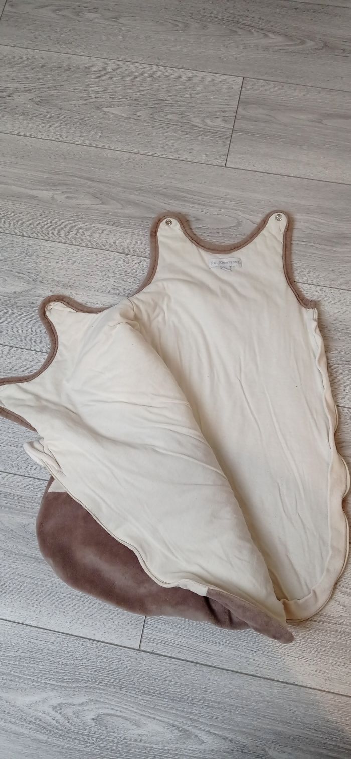 Je vends 2 gigoteuses naissance a 6 mois environ. L'une est légère sans manches et l'autre est plus épaisse de la marque les kinousses et sans manches aussi. Elles sont en très bon état