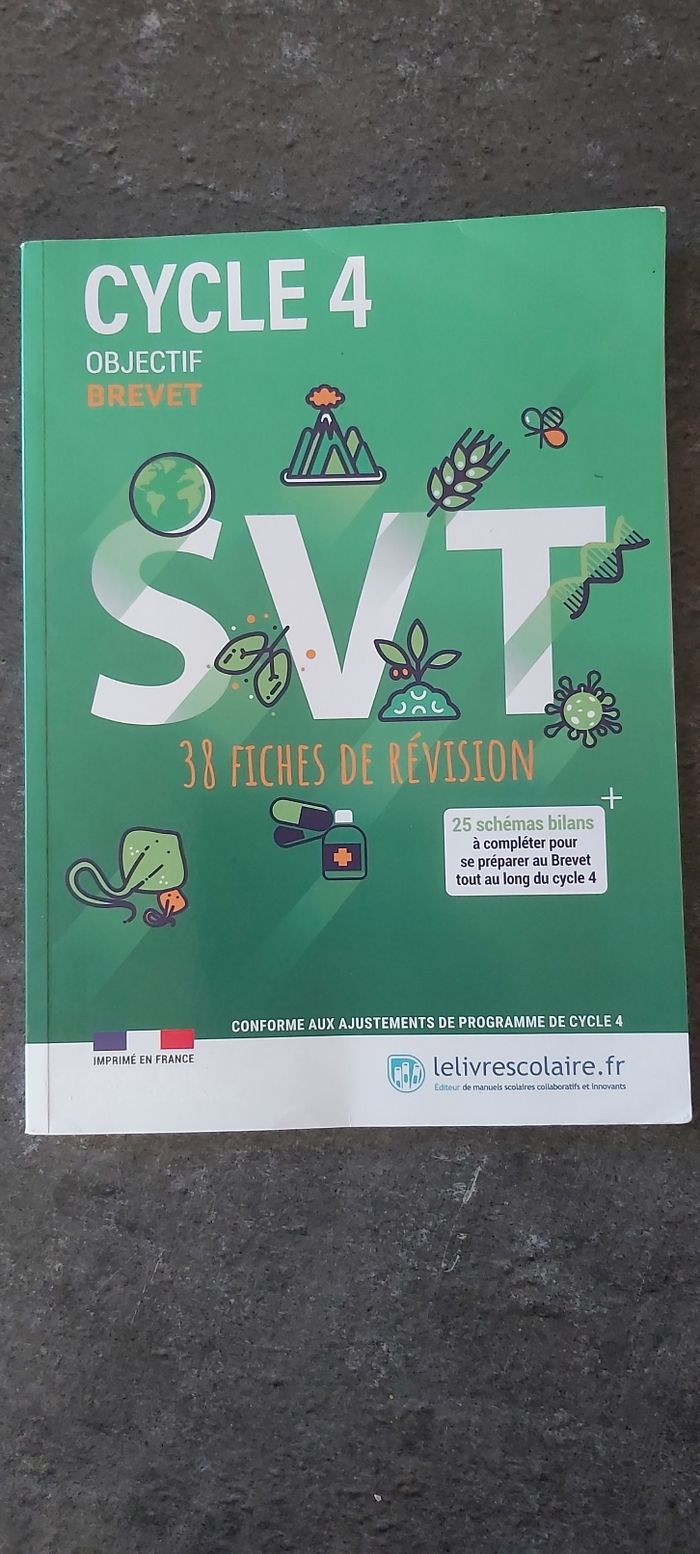 Vends livre SVT Objectif brevet Cycle 4 38 fiches de révision