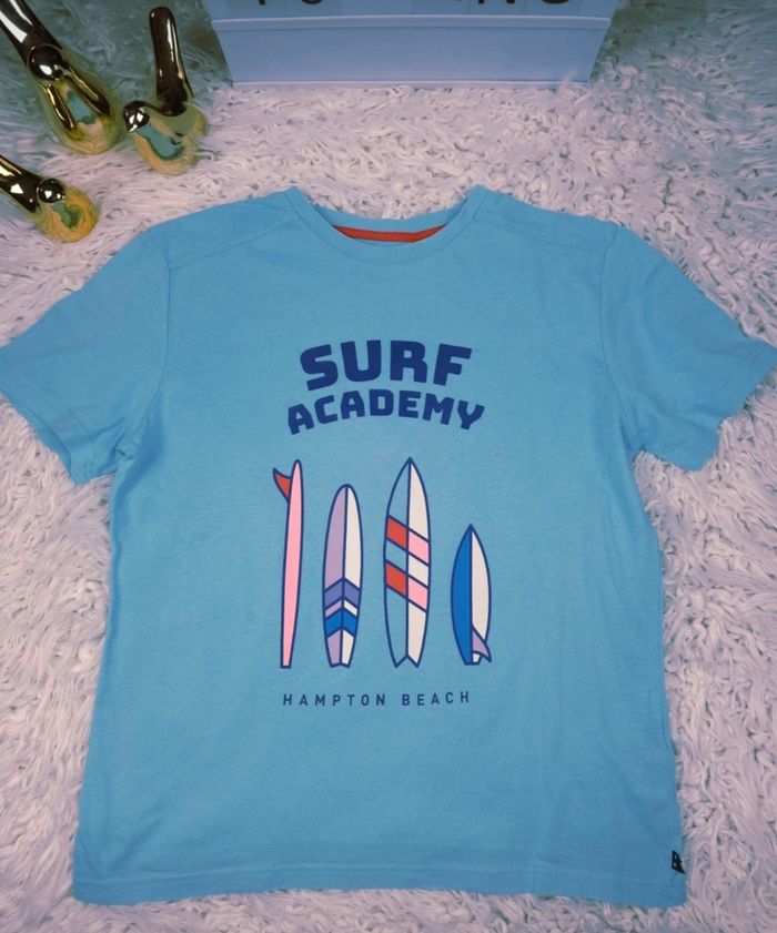 T-shirt manches courtes " Surf Academy " bleu ciel Garçon taille 10 ans marque Okaidi 🎸