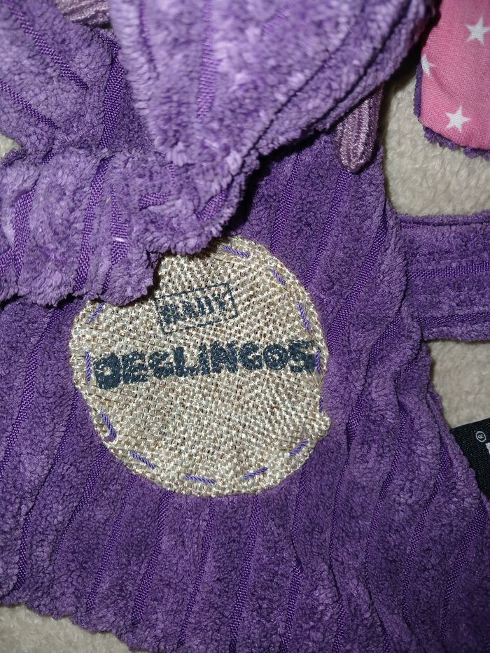 Doudou plat éléphant violet en velours côtelé. Hauteur 27cm.les Déglingots