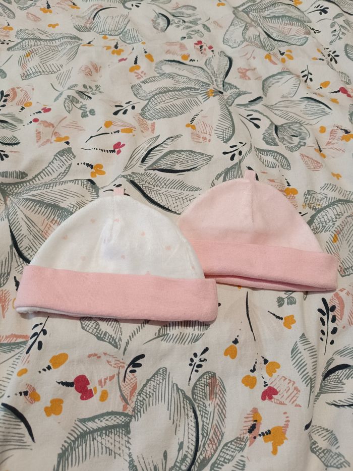 Bonjour, Je vends ces deux bonnets en taille 1 mois (56 cm) de la marque In extenso.