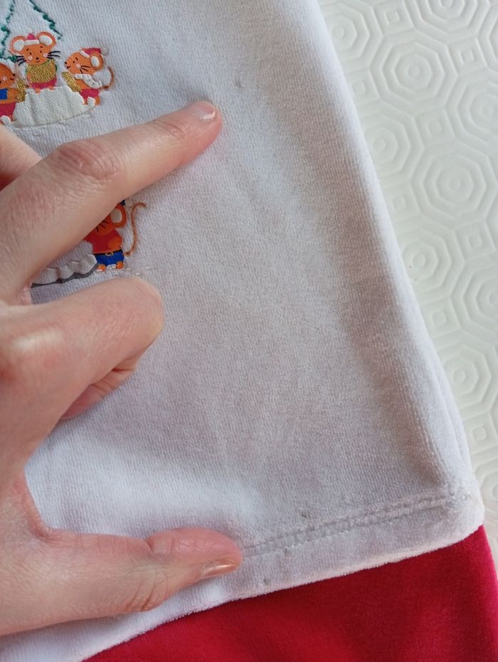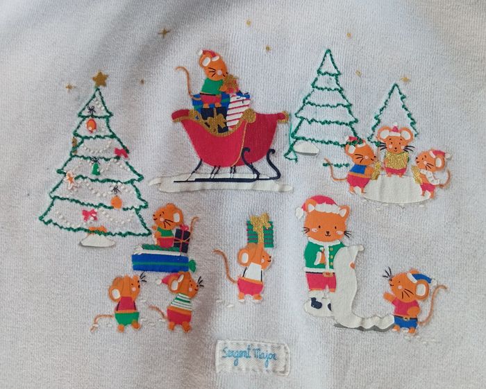 Magnifique pyjama de Noël une pièce en velours Sergent Major en taille 24 mois, jambes couleur rouge vif, motifs chats brodés sur les genoux, motif vichy bleu sur le col avec sapins brodés et le dessous des pieds antidérapants, haut blanc à motif scène de Noël. Pyjama très doux et en parfait état si ce n'est : quelques micro tâches visibles sur les photos, ainsi que deux boutons pressions qui commencent à se découdre. N'hésitez pas à me contacter pour toute question et à faire des lots, réductions activées ☺️ #sergentmajor #sergentmajorgarçon #sergentmajoraddict #sergentmajor24mois #sergentmajor24moisgarcon #bebechic #pyjamavelours #24moisgarcon #pyjamanoel24mois #sergentmajorpyjama #noel #chat #souris #traineau #neige #traineaudenoel #bonhommedeneige #sapin #sapindenoel #pyjamavelours24mois