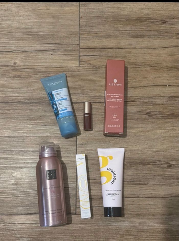 Box beauté qui contient : - Parfum Ô Zénith 10 ml - Lancôme - Crème nourrissante 75 ml - Gambettes Legcare - Soin matifiant visage 50 ml - Ustawi - Huile à lèvres - Lancôme - Gommage visage 75 ml - Yves Rocher - Lotion mousse corps 150 ml - Rituals