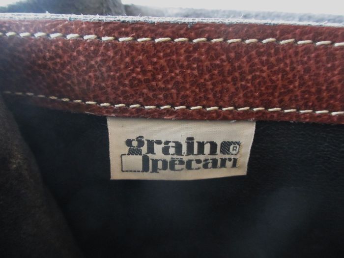 Sacoche marron Grain Pécari en croûte de cuir de vache avec poignée de transport - photo numéro 1