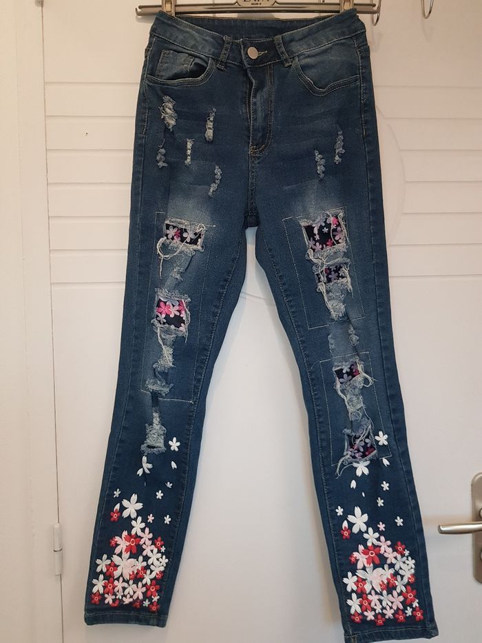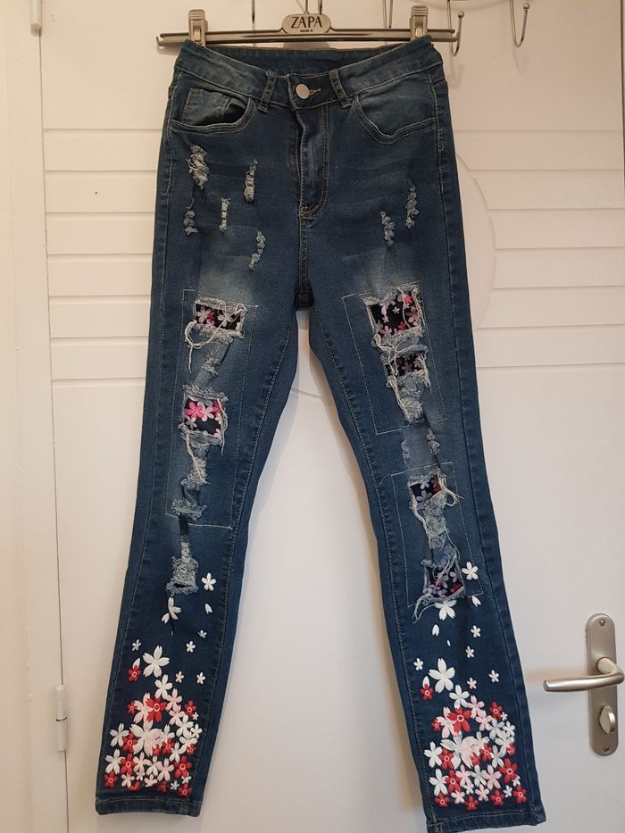 Jean troué fleuri  - photo numéro 1