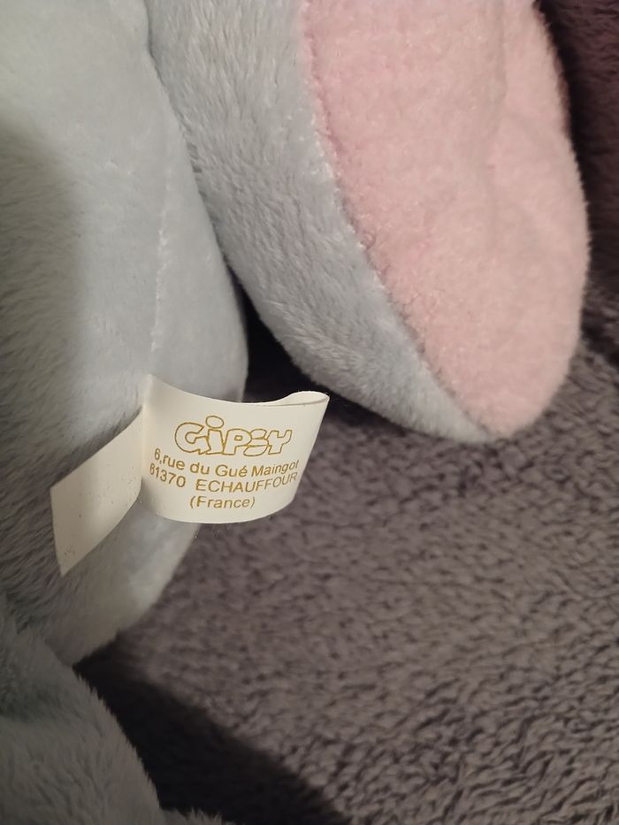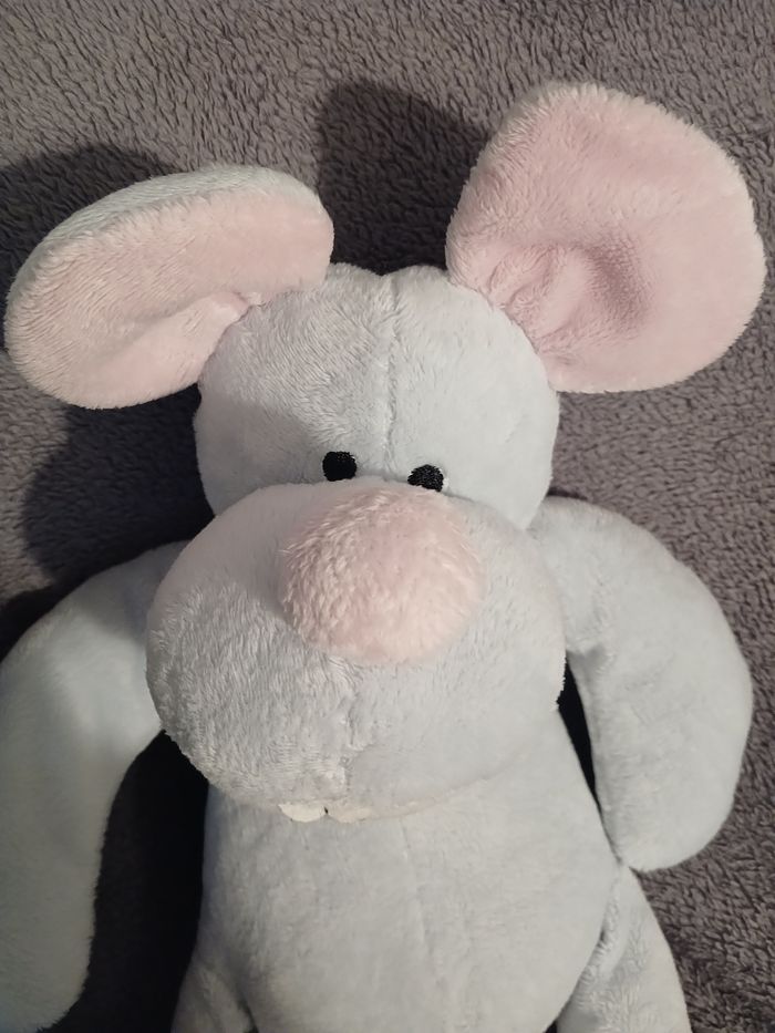 Grande peluche souris gipsy d'une hauteur de 50cm. Bleu ciel et rose. Billes dans le popotin