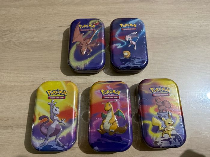 Lots de 5 mini tin de kanto neuf sceller en FR 2025 contient 1 booster astres radieux et 1 origine perdu
