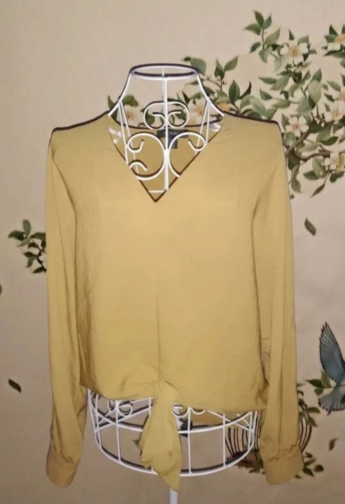 Très belle blouse fluide couleur moutarde à nouer devant. Taille 36 mais ample convient à un 38 et également à un 40. Neuve jamais portée