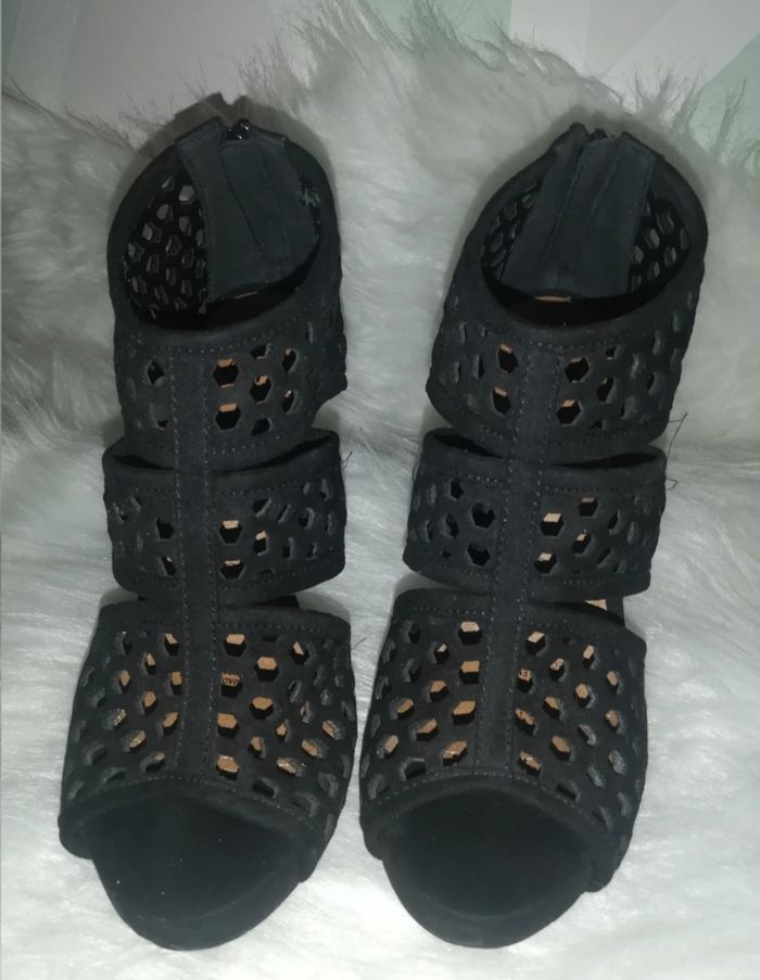 Très jolies sandales à talons de 12 cm. Pointure 37. Couleur noire. Très bon état.