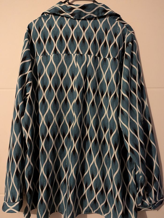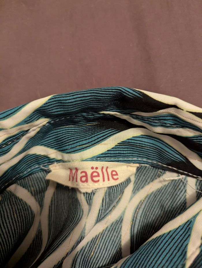 Jolie chemise "Maëlle"verte et beige en très bon état. Il n'y a plus d'étiquette pour la taille mais correspond à un 42