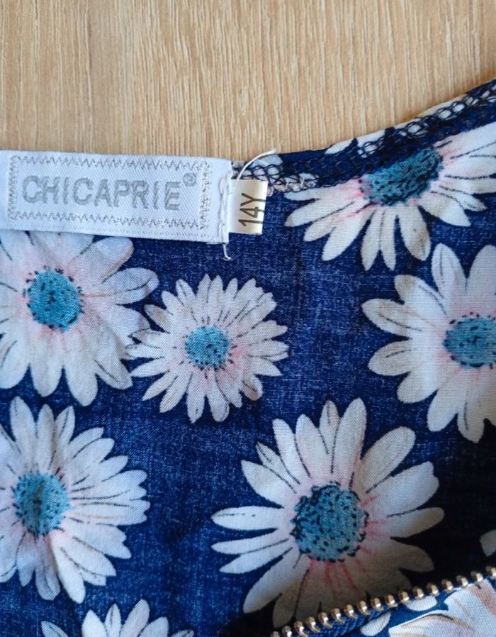 Combinaison longue Fleurie bleu foncé. Taille 14 ans